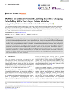 DuMES: deep reinforcement learning based EV charging scheduling with dual-layer safety modules.