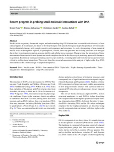 Poole, S., O'Gorman, B., Cardin, C. J. ORCID: https://orcid.org/0000-0002-2556-9995 and Kellett, A. (2025) Recent progress in probing small molecule interactions with DNA. Biophysical Reviews. ISSN 1867-2469 doi: 10.1007/s12551-025-01373-z (In Press)