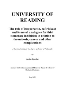 Keovilay, J. (2025) The role of isoquercetin, zafirlukast and its novel analogues for thiol isomerase inhibition in relation to thrombosis, cancer and other complications. PhD thesis, University of Reading. doi: 10.48683/1926.00127344
