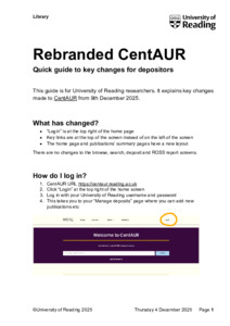 Open Research Team (2025) Rebranded CentAUR: Quick guide to key changes for depositors. [CentAUR Administrative Document]