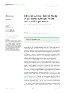Wood, J., Giromini, C. and Givens, I. (2025) Editorial: Animal-derived foods in our diets: nutrition, health and social implications. Frontiers in Animal Science, 6. 1561770. ISSN 2673-6225 doi: 10.3389/fanim.2025.1561770