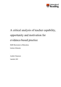 Stanescu, A. (2025) A critical analysis of teacher capability, opportunity and motivation for evidence-based practice. EdD thesis, University of Reading. doi: 10.48683/1926.00127412