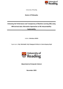 Atmakuru, A. (2025) Enhancing the performance and transparency of Machine Learning (ML) using MRI-derived data: alternative approaches to ML interpretability-explainability. PhD thesis, University of Reading. doi: 10.48683/1926.00127413