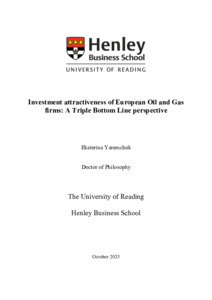 Yaremchuk, E. (2025) Investment attractiveness of European oil and gas firms: a triple bottom line perspective. PhD thesis, University of Reading. doi: 10.48683/1926.00127477