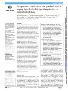 Postoperative complications after paediatric cardiac surgery: the role of ethnicity and deprivation – a national cohort study