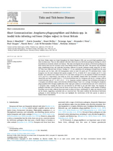 Short communication: Anaplasma phagocytophilum and Babesia spp. in ixodid ticks infesting red foxes (Vulpes vulpes) in Great Britain.