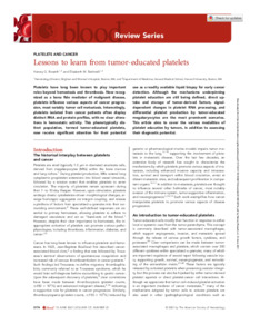 Platelets have long been known to play important roles beyond hemostasis and thrombosis. Now recognized as a bona fide mediator of malignant disease, platelets influence various aspects of cancer progression, most notably tumor cell metastasis. Interestingly, platelets isolated from cancer patients often display distinct RNA and protein profiles, with no clear alterations in hemostatic activity. This phenotypically distinct population, termed tumor-educated platelets, now receive significant attention for their potential use as a readily available liquid biopsy for early cancer detection. Although the mechanisms underpinning platelet education are still being defined, direct uptake and storage of tumor-derived factors, signal-dependent changes in platelet RNA processing, and differential platelet production by tumor-educated megakaryocytes are the most prominent scenarios. This article aims to cover the various modalities of platelet education by tumors, in addition to assessing their diagnostic potential.