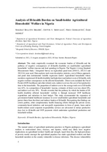 Uncontrolled Keywords Ill-Health Burden, Agricultural Households, Welfare, Nigeria
