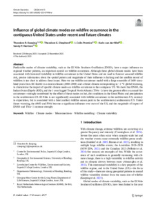 Keeping, T. R., Shepherd, T. G. ORCID: https://orcid.org/0000-0002-6631-9968, Prentice, I. C., van der Wiel, K. and Harrison, S. P. ORCID: https://orcid.org/0000-0001-5687-1903 (2026) Influence of global climate modes on wildfire occurrence in the contiguous United States under recent and future climates. Climate Dynamics, 64 (1). 15. ISSN 1432-0894 doi: 10.1007/s00382-025-07998-w