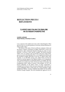 Agbamu, S. ORCID: https://orcid.org/0000-0002-4844-9283 (2022) Classics and Italian colonialism: an outsider’s perspective. Italian Studies in Southern Africa, 35 (1). pp. 29-32.