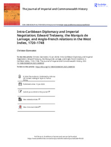 Giannatos, C. ORCID: https://orcid.org/0009-0001-2273-0616 (2026) Intra-Caribbean diplomacy and imperial negotiation; Edward Trelawny, the Marquis de Larnage, and Anglo-French relations in the West Indies, 1720–1748. The Journal of Imperial and Commonwealth History. ISSN 1743-9329 doi: 10.1080/03086534.2025.2608930