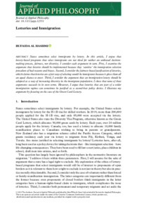 Al Hashmi, R. ORCID: https://orcid.org/0000-0002-5499-9206 (2022) Lotteries and immigration. Journal of Applied Philosophy, 39 (2). pp. 253-265. ISSN 1468-5930 doi: 10.1111/japp.12551