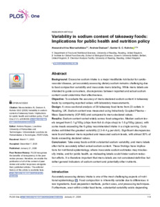 Variability in sodium content of takeaway foods: implications for public health and nutrition policy.