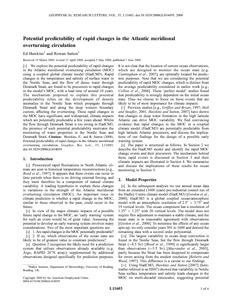 Potential predictability of rapid changes in the Atlantic meridional overturning circulation.