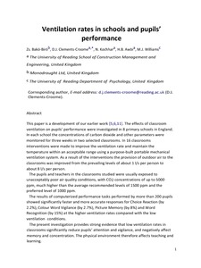 Clements-Croome, D. J., Awbi, H. B., Bako-Biro, Z., Kochhar, N. and Williams, M. (2008) Ventilation rates in schools. Building and Environment, 43 (3). pp. 362-367. ISSN 0360-1323 doi: 10.1016/j.buildenv.2006.03.018