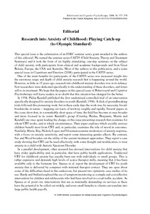 This special issue is the culmination of an ESRC seminar series grant awarded to the authors of this editorial. We named the seminar series CATTS (Child Anxiety, Theory and Treatment Seminars) and it took the form of six highly stimulating, one-day seminars on the subject of child anxiety, with participants from clinical and academic backgrounds and from Great Britain, Europe, the USA and Australia. Most of the authors in this publication, and a sister special issue in Cognitions and Emotion (2008), participated in the CATTS series.