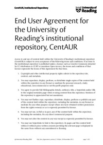 End User Agreement for the University of Reading's institutional repository, CentAUR