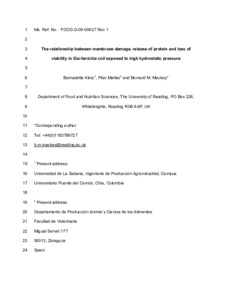 Klotz, B., Manas, P. and Mackey, B. M. (2010) The relationship between membrane damage, release of protein and loss of viability in Escherichia coli exposed to high hydrostatic pressure. International Journal of Food Microbiology, 137 (2-3). pp. 214-220. ISSN 0168-1605 doi: 10.1016/j.ijfoodmicro.2009.11.020