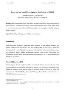 Some reports of snowfall from fog during the UK winter of 2008/09.