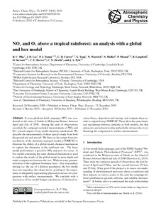 NOx and O3 above a tropical rainforest: an analysis with a global and box model