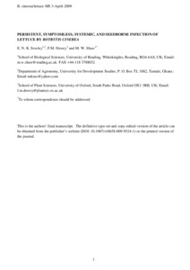 | Uncontrolled Keywords | Botryotinia fuckeliana; Endophyte; Grey mould; Lactuca sativa; Latent; Vertical disease transmission |