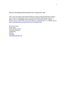 Moore, A. K. (2010) The loss of Normandy and the invention of Terre Normannorum, 1204. English Historical Review, 125 (516). pp. 1071-1109. ISSN 0013-8266 doi: 10.1093/ehr/ceq273