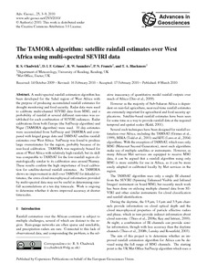 Chadwick, R., Grimes, D. I. F., Saunders, R. W., Francis, P. N. and Blackmore, T. A. (2010) The TAMORA algorithm: satellite rainfall estimates over West Africa using multi-spectral SEVIRI data. Advances in Geosciences (ADGEO), 25. pp. 3-9. ISSN 1680-7340 doi: 10.5194/adgeo-25-3-2010