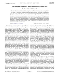 Cao, J. and Likhtman, A. E. (2010) Time-dependent orientation coupling in equilibrium polymer melts. Physical Review Letters, 104 (20). 207801. ISSN 0031-9007 doi: 10.1103/PhysRevLett.104.207801