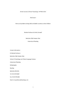 Parkinson, M. and Creswell, C. (2011) Worry and problem-solving skills and beliefs in primary school children. British Journal of Clinical Psychology, 50 (1). pp. 106-112. ISSN 2044-8260 doi: 10.1348/014466510X523887