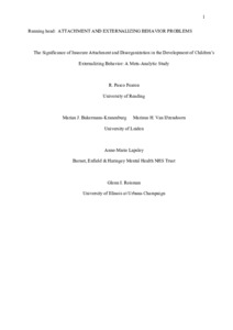 Fearon, R. P., Bakermans-Kranenburg, M. J., van IJzendoorn, M. H., Lapsley, A.-M. and Roisman, G. I. (2010) The significance of insecure attachment and disorganization in the development of children's externalizing behavior: A meta-analytic study. Child Development, 81 (2). pp. 435-456. ISSN 0009-3920 doi: 10.1111/j.1467-8624.2009.01405.x