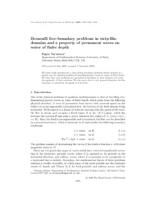 Varvaruca, E. (2008) Bernoulli free-boundary problems in strip-like domains and a property of permanent waves on water of finite depth. Proceedings of the Royal Society of Edinburgh: Section A Mathematics, 138 (6). 1345 -1362. ISSN 0308-2105 doi: 10.1017/S0308210507000522
