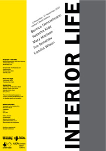 Interior Life was curated by Tim Renshaw, Mary Maclean and Bernice Donszelmann who together form ‘Outside Architecture’. The aim of this project was to argue that interior space should not be negatively defined as a retreat from the public realm. Instead, following the thought of the philosopher Peter Slotterdijk, interior space was proposed as a human need. The five artists selected by ‘Outside Architecture’ each visualized this need differently. A contention here was that interiors give rise to a multiplicity of experiences that potentially change the way we dwell in contemporary man-made space. This contention was primarily figured in relation to the materiality of contemporary interiors. Each gave attention to the effects of contemporary materials and surfaces and each considered that these forms produce new modes of sensing and immersion in a place. The exhibition included two talks by the members of ‘Outside Architecture. The project was supported by an Arts Council of England grant of £6,323 www.ucreative.ac.uk/galleries