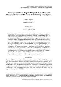 Pathways to inflated responsibility beliefs in adolescent obsessive-compulsive disorder: a preliminary investigation.