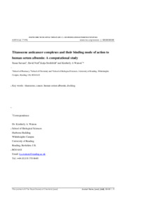 Sarsam, S. W., Nutt, D. R., Strohfeldt, K. and Watson, K. A. ORCID: https://orcid.org/0000-0002-9987-8539 (2011) Titanocene anticancer complexes and their binding mode of action to human serum albumin: a computational study. Metallomics, 3 (2). pp. 152-161. ISSN 1756-5901 doi: 10.1039/c0mt00041h