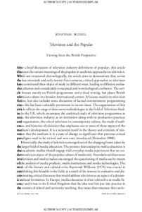Bignell, J. ORCID: https://orcid.org/0000-0003-4874-1601 (2010) Television and the popular: viewing from the British perspective. Journal of Literary Theory, 4 (2). pp. 181-198. ISSN 1862-5290 doi: 10.1515/JLT.2010.012