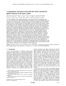 A Tropospheric Assessment of the ERA-40, NCEP, and JRA-25 Global Reanalyses in the Polar Regions.
