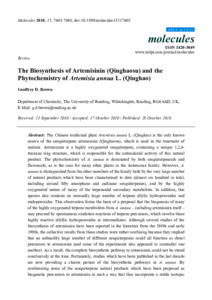 Brown, G. D. (2010) The Biosynthesis of Artemisinin (Qinghaosu) and the Phytochemistry of Artemisia annua L. (Qinghao). Molecules, 15 (11). pp. 7603-7698. ISSN 1420-3049 doi: 10.3390/molecules15117603