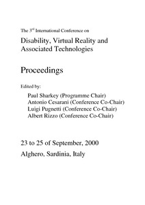Sharkey, P., Cesarani, A., Pugnetti, L. and Rizzo, A., eds. (2000) Proceedings of the 3rd international conference on disability, virtual reality and associated technologies (ICDVRAT 2000). ICDVRAT. The University of Reading, Reading, pp400. ISBN 0704911426