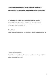 Tuning the self-assembly of the bioactive dipeptide L-carnosine by incorporation of a bulky aromatic substituent.