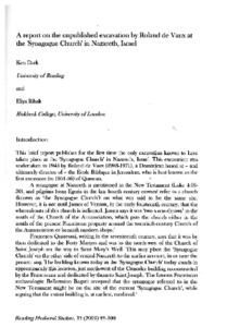 A report on the unpublished excavation by Roland de Vaux at the 'Synagogue Church' in Nazareth, Israel.