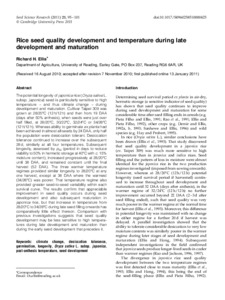 Ellis, R. H. ORCID: https://orcid.org/0000-0002-3695-6894 (2011) Rice seed quality development and temperature during late development and maturation. Seed Science Research, 21 (2). pp. 95-101. ISSN 0960-2585 doi: 10.1017/S0960258510000425
