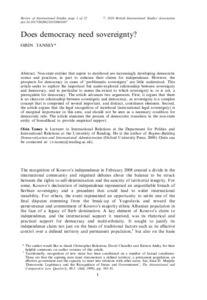 Tansey, O. (2011) Does democracy need sovereignty? Review of International Studies, 37 (4). 1515 -1536. ISSN 0260-2105 doi: 10.1017/S0260210510001087