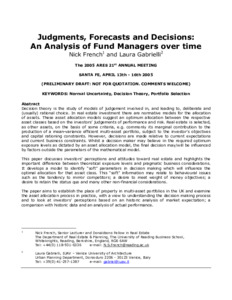 French, N. and Gabrielli, L., (2005) Judgments, forecasts and decisions: an analysis of fund managers over time. Working Papers in Real Estate & Planning. 15/05. Working Paper. University of Reading, Reading. pp10.