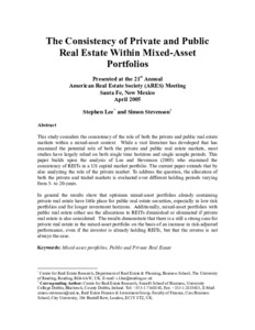 Lee, S. and Stevenson, S., (2005) The consistency of private and public real estate within mixed-asset portfolios. Working Papers in Real Estate & Planning. 08/05. Working Paper. University of Reading, Reading. pp14.