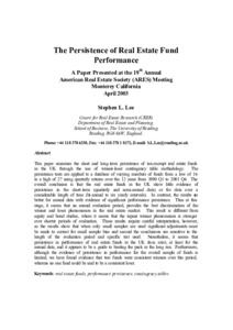 Lee, S., (2003) The persistence of real estate fund performance. Working Papers in Real Estate & Planning. 08/03. Working Paper. University of Reading, Reading. pp15.