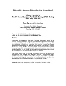 Byrne, P. and Lee, S., (2004) Different risk measures: different portfolio compositions? Working Papers in Real Estate & Planning. 03/04. Working Paper. University of Reading, Reading. pp14.