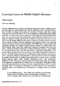 Hardman, P. (2011) Learning lessons in Middle English romance. Reading Medieval Studies, XXXVII. pp. 1-13. ISSN 0950-3129