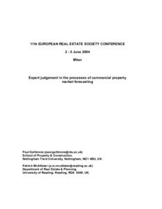 Gallimore, P. and McAllister, P., (2004) Expert judgement in the processes of commercial property market forecasting. Working Papers in Real Estate & Planning. 11/04. Working Paper. University of Reading, Reading. pp34.
