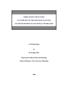 Hart, D., (2004) Forecasting the future: an overview of the strategic planning of the Bournemouth and Poole conurbation. Working Papers in Real Estate & Planning. 18/04. Working Paper. University of Reading, Reading. pp18.