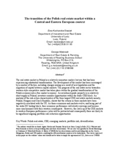 Kucharska-Stasiak, E. and Matysiak, G., (2004) The transition of the Polish real estate market within a Central and Eastern European context. Working Papers in Real Estate & Planning. 16/04. Working Paper. University of Reading, Reading. pp26.
